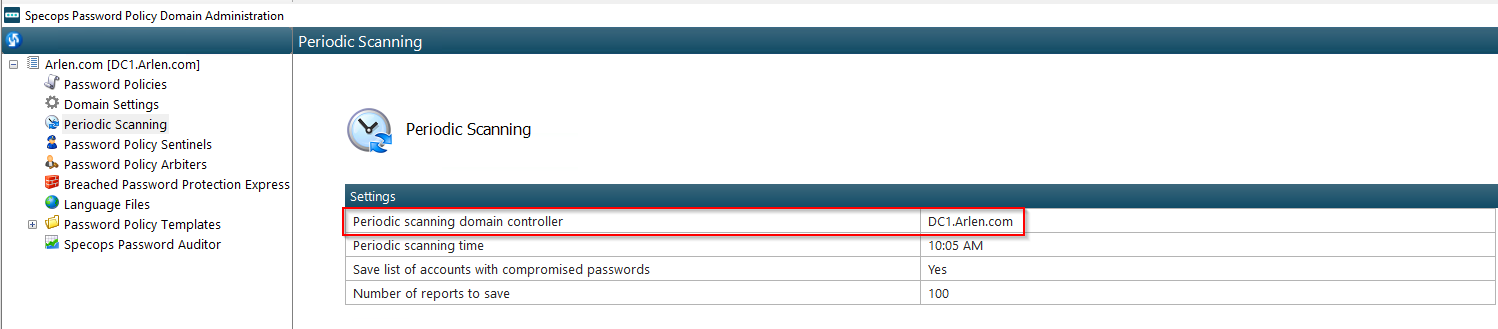 We can also take this a step further by first confirming which machine is the Periodic scanning domain controller which by default is the PDC by looking at the top of the Periodic scanning tab and seeing which DC is defined in Periodic scanning domain controller: