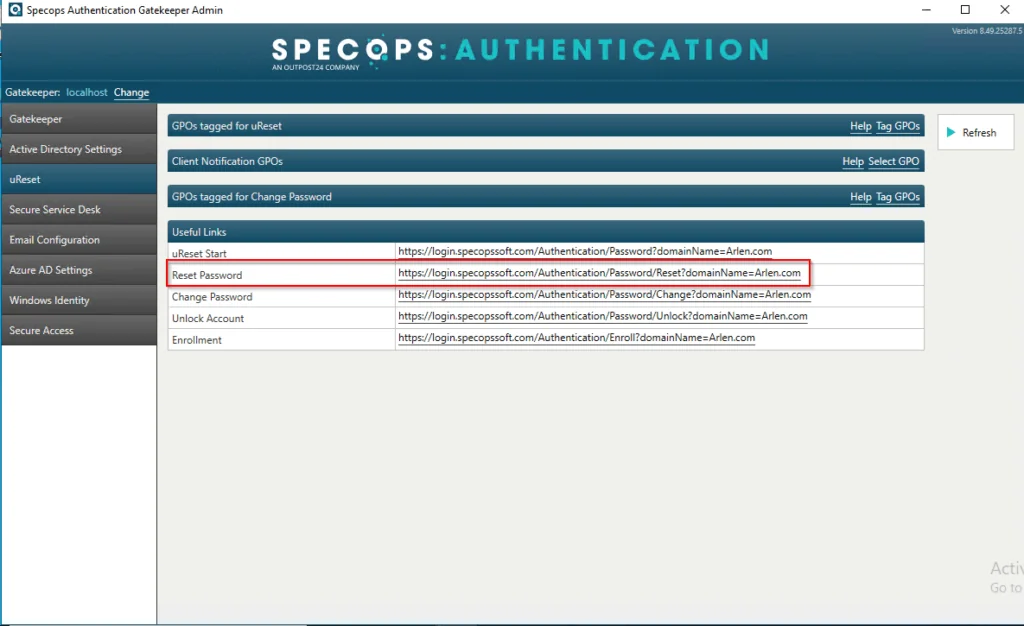 Next, choose the uReset tab on the left. Under the URLs in this section, identify and right-click the Reset Password URL again storing it to a temporary location: